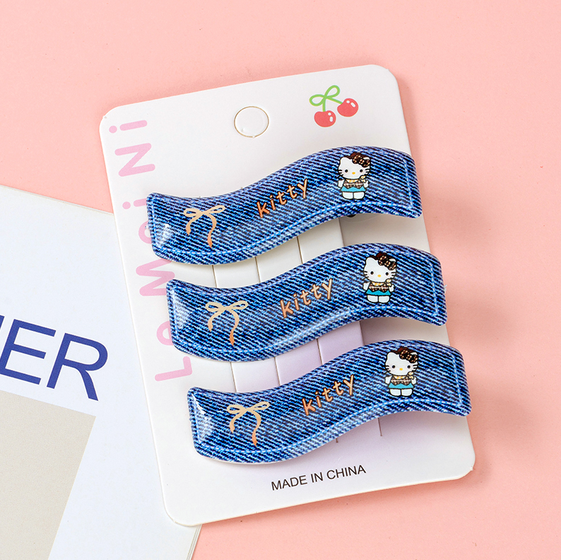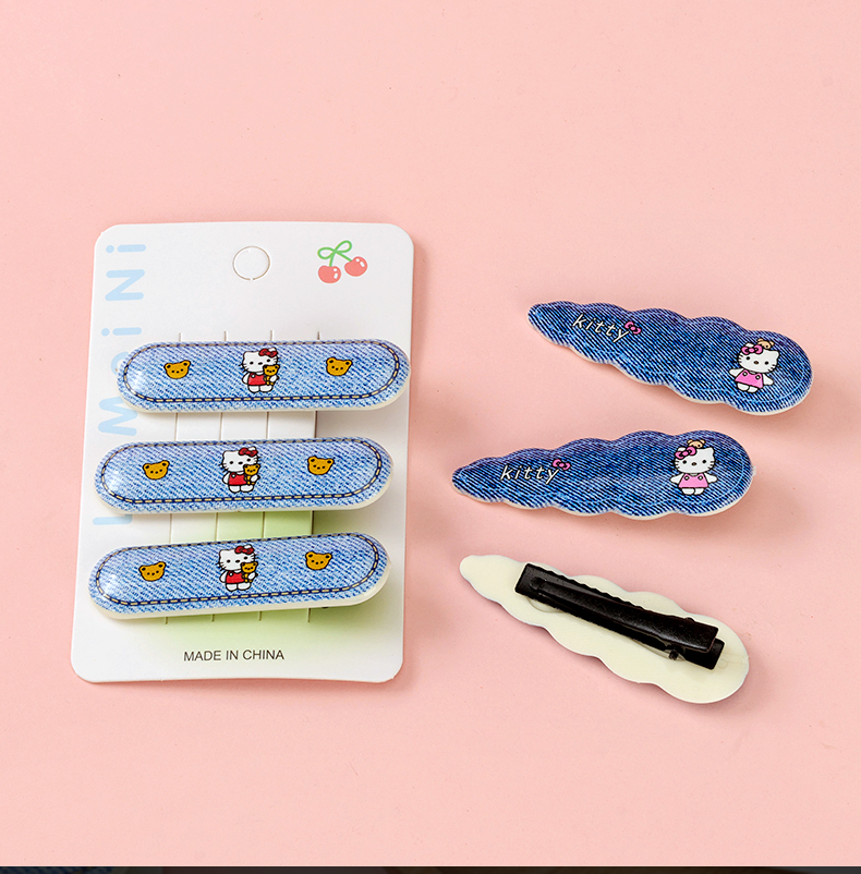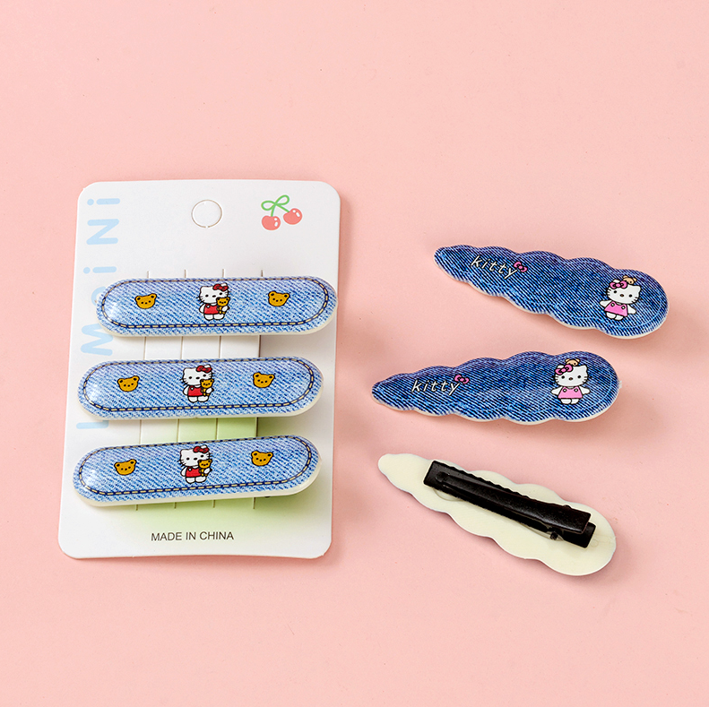 Boxed cartoon Denim printing accessories duck clip (3 pieces)